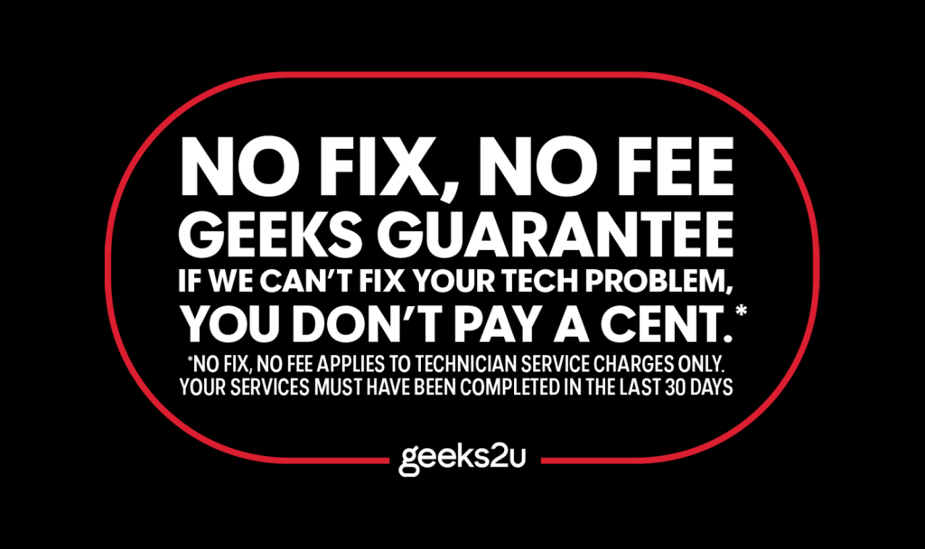 When you call Geeks2U to help resolve your tech issues, we guarantee that you’ll receive quick and friendly service. We don’t want to add to your headaches, which is why we offer a no fix, no fee guarantee – meaning if your problem isn’t solved by a Geek, you don’t have to pay a cent.